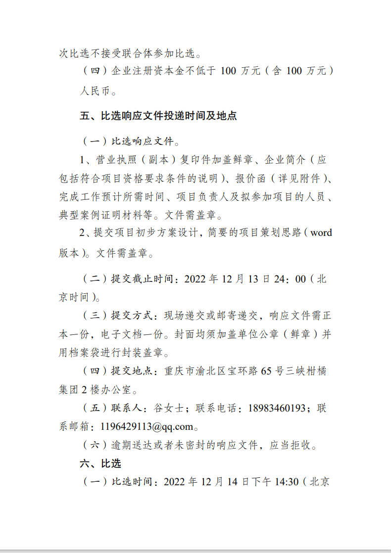 重慶三峽柑橘集團有限公司關(guān)于確定三峽柑橘集團全案品牌策劃服務(wù)單位比選的通知